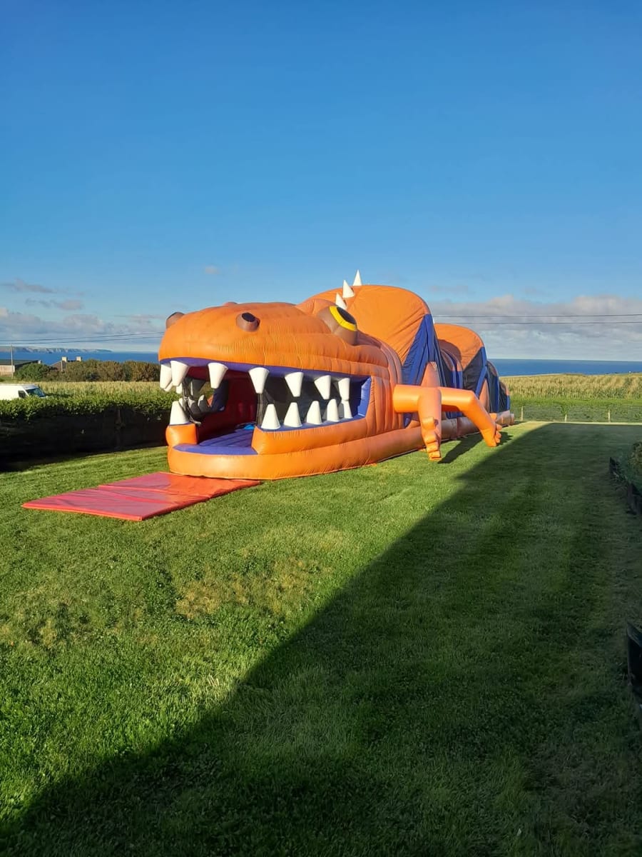 Inside this extraordinary inflatable, a series of challenges and obstacles await. Squeeze through tunnels, test your strength with biff bash elements, scale climbing walls, and get ready for an exhilarating slide that marks the triumphant end of your journey. The 2 Part Lizard Obstacle Course is a test of agility, courage, and determination.