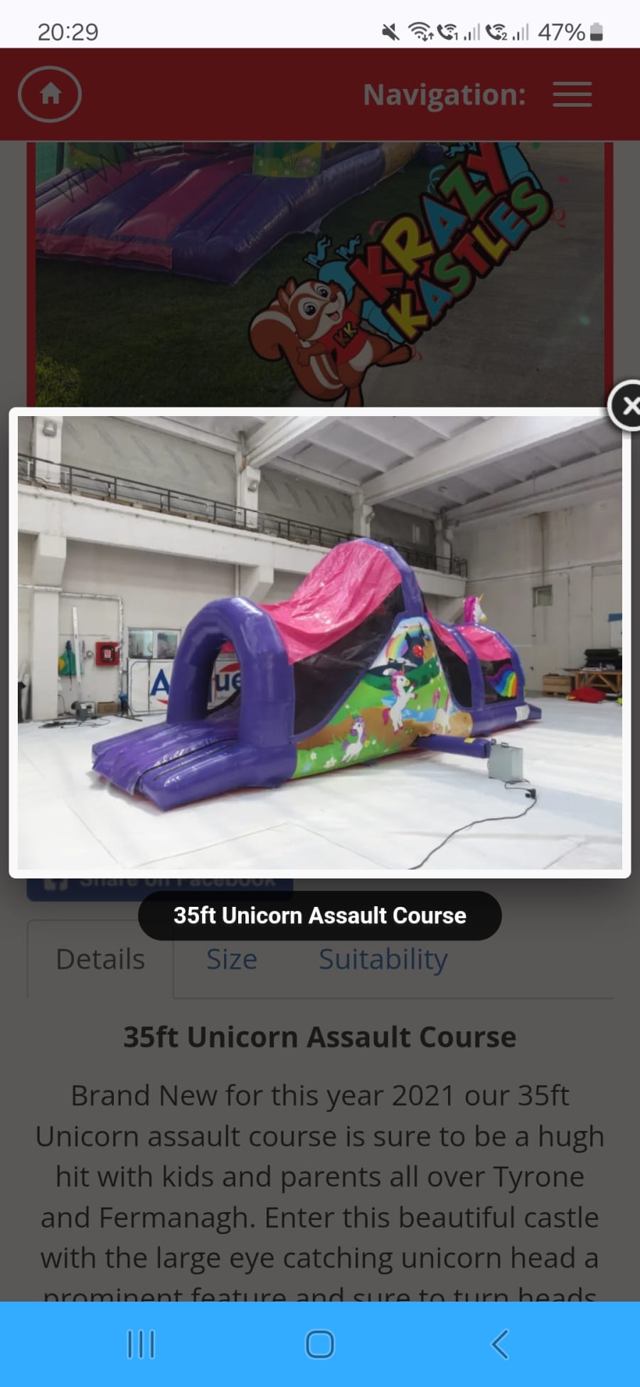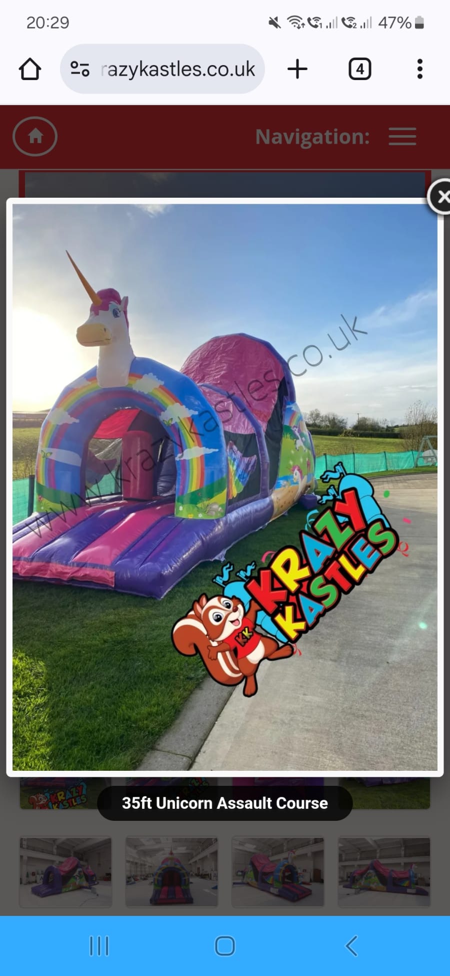 To book this 35ft Unicorn Assault Course or check its availability using our live diary just click the links below. Our 24/7 online booking system will guide you step by step to book your selected bouncy castle or hire item. We will then follow up and confirm your booking with a quick call. Or, if you have any questions about this or any other bouncy castle in our range, or any of our other services please feel free to call us now
